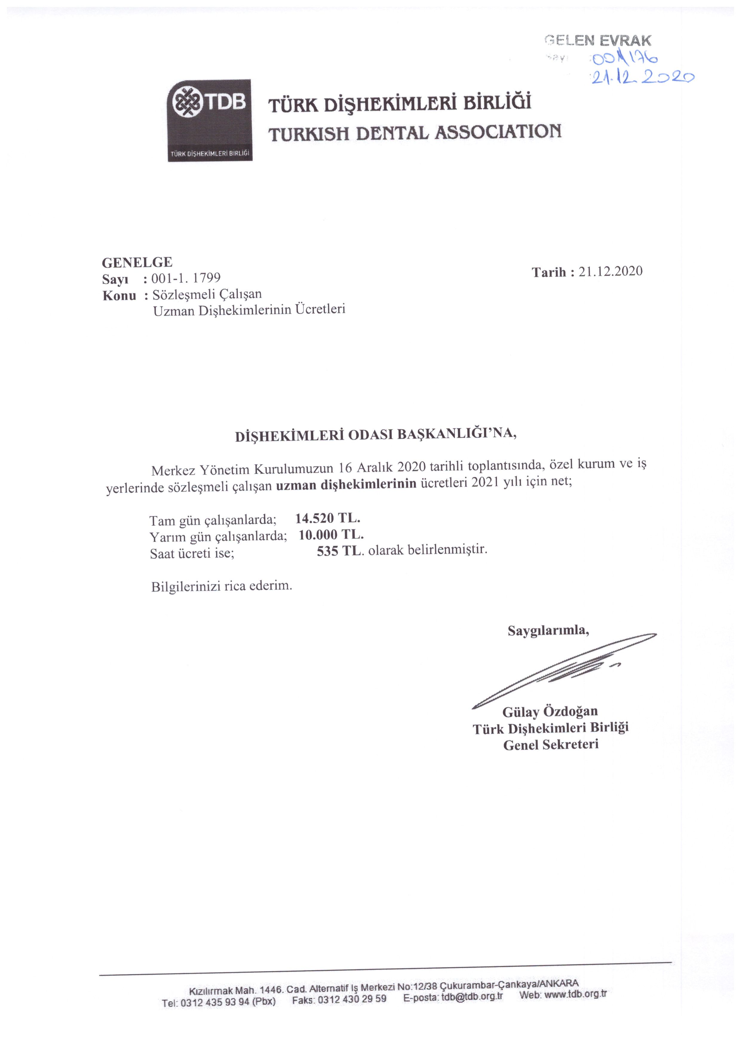 2021 YILI SÖZLEŞMELİ ÇALIŞAN UZMAN DİŞHEKİMLERİNİN ÜCRETLERİ